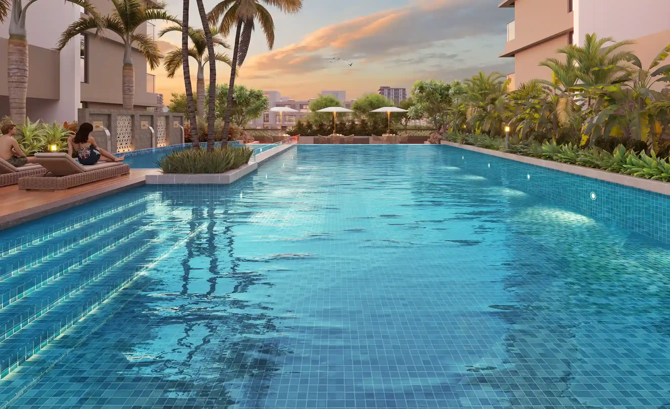 54 Flores Drive is located at Magarpatta Rear Approach, Hadapsar — with three-way access from Koregaon Park, Solapur Road, and Magarpatta. Open, flowing layouts allow light and air to move freely. Living and dining areas are shaped for everyday flow. Bedrooms are private and calm. The master suite is generous, layered, and designed as a personal retreat.